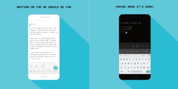 L’app “Material Design Award Winners” legata al tema è “ruff“, un’app che consente di prendere rapidamente delle note con diversi stili. Come accompagnamento al premio Google ha riportato che: