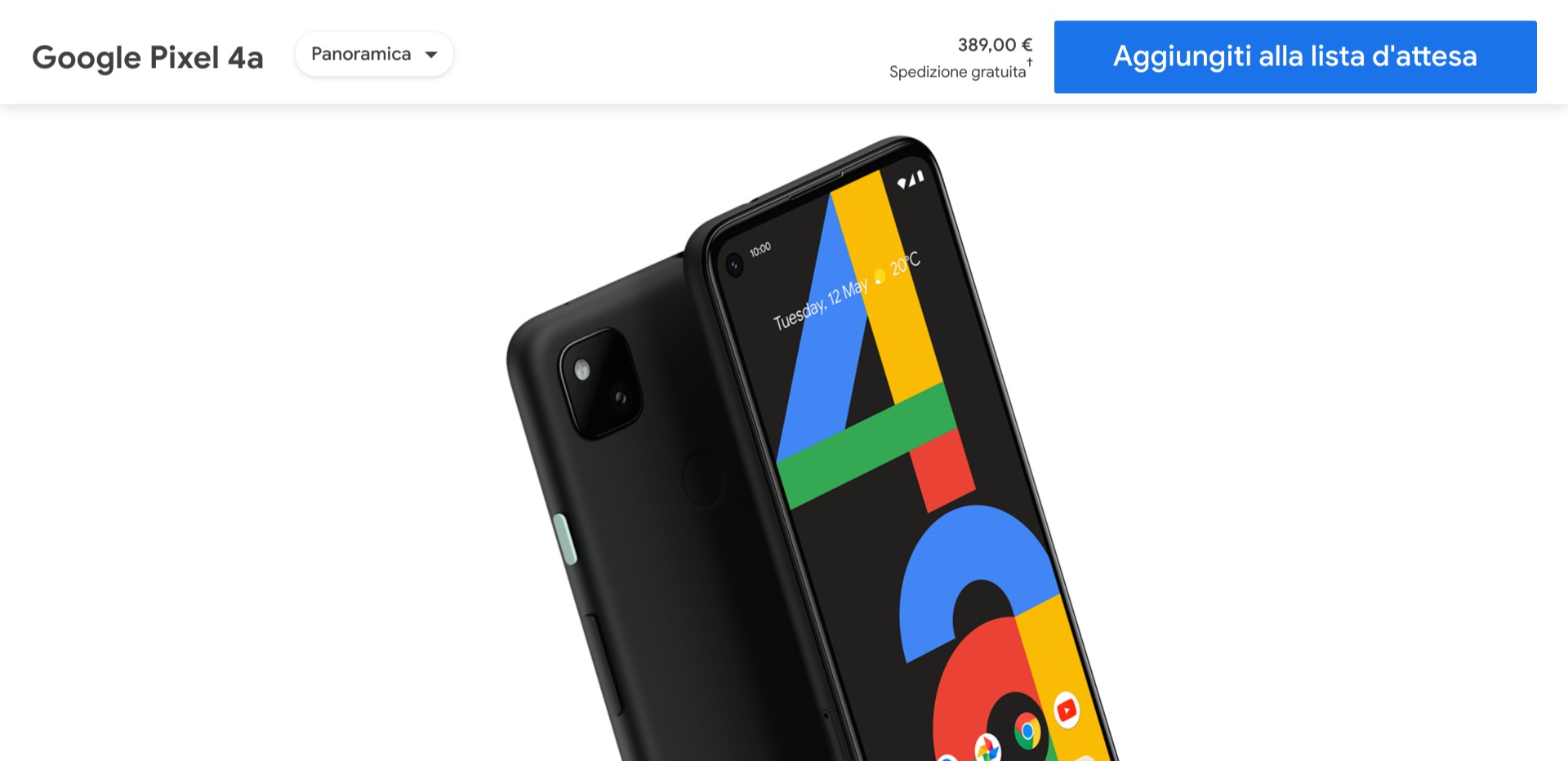 3) Google Pixel 4a ufficiale: in vendita da ottobre a 389 euro