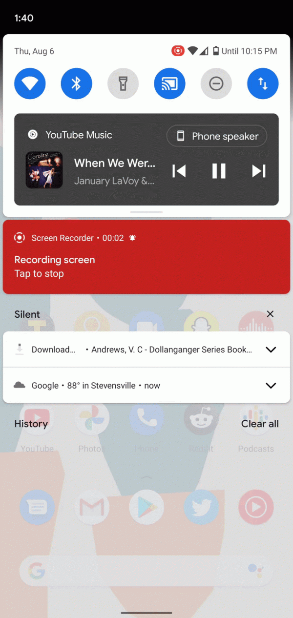 Per fortuna, Android 11 Beta 3 consente di rimuovere i controlli, sia nel pannello delle impostazioni rapide che dalla schermata di blocco. È ancora un po’ strano, però. Per prima cosa, quando si effettua uno swipe, i contenuti multimediali non smettono di essere riprodotti. In effetti, si possono ancora vedere i controlli multimediali se si tira nuovamente verso il basso la tendina dei quick toggle.