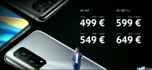- Mi 10T 6 + 128 GB a 549 euro