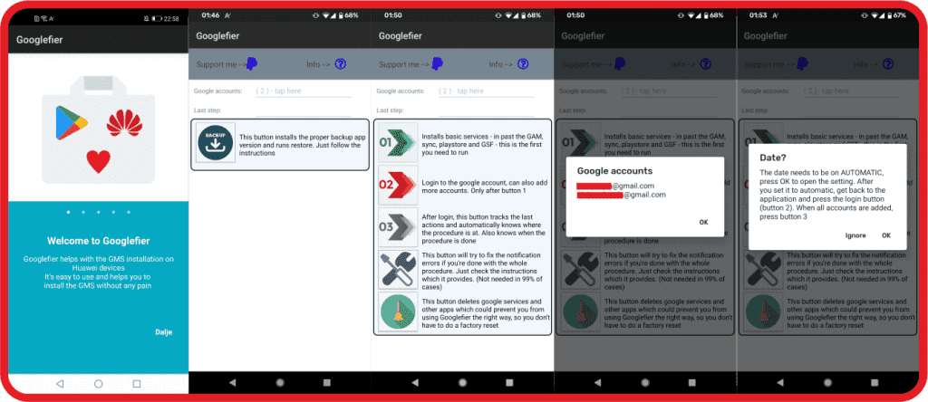 4) Googlefier è l’app che semplifica l’installazione dei servizi Google sugli smartphone Huawei e Honor
