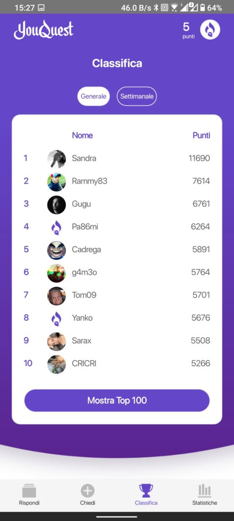 Per funzionare al meglio, YouQuest necessita chiaramente di una community quanto più ampia possibile: più gente c’è che crea e risponde ai sondaggi, più aiuto le persone riceveranno (e più possibilità avranno di vincere un buono Amazon da 10 euro). In pratica, effettuando sempre nuove domande e rispondendo ai quesiti posti dagli altri utenti, verranno accumulati punti che permetteranno di scalare la classifica diventando il miglior YouQuester settimanale.