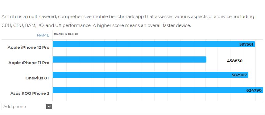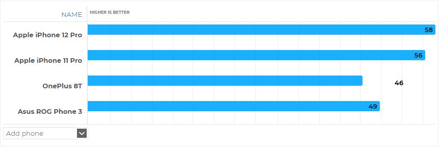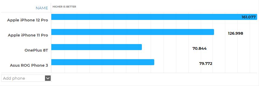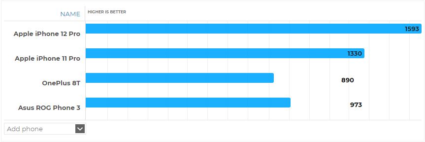 Eccovi dunque una carrellata di test benchmark che vedono scontrarsi iPhone 12 Pro (A14), iPhone 11 Pro (A13), OnePlus 8T (Snapdragon 865) e Asus ROG Phone 3 (Snapdragon 865+).