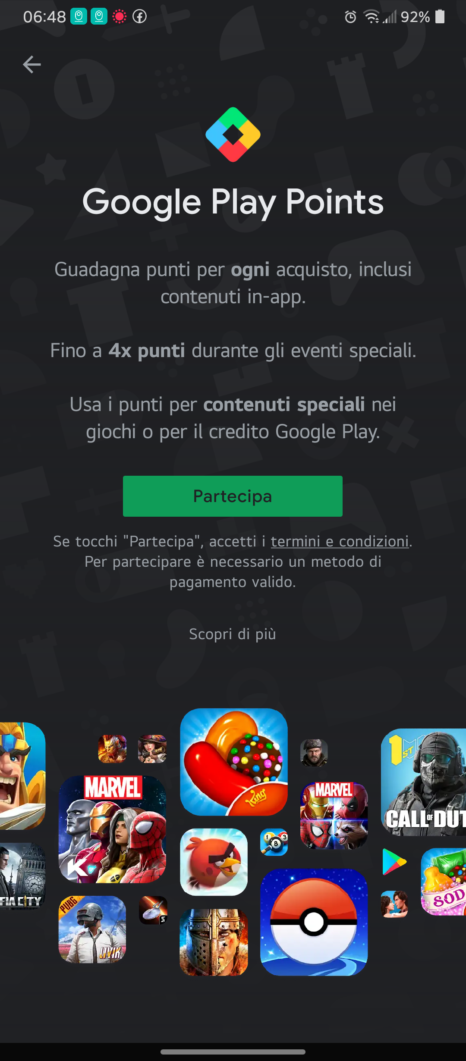 Come registrarsi per i Google Play Points