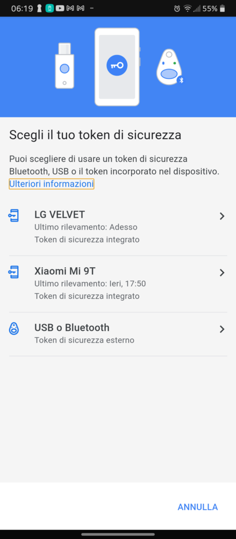 Il processo di registrazione di una Yubikey sul proprio account Google è molto semplice e può avvenire sia su Android che su PC desktop. Qui di seguito vi mostriamo la procedura tramite uno smartphone Android: