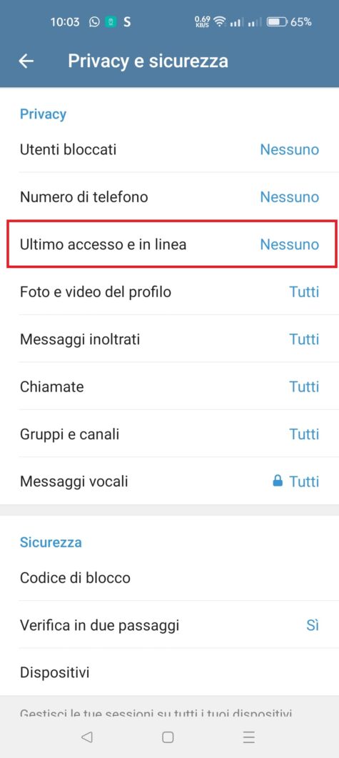 • Toccare sulla terza opzione “Ultimo accesso e in linea”