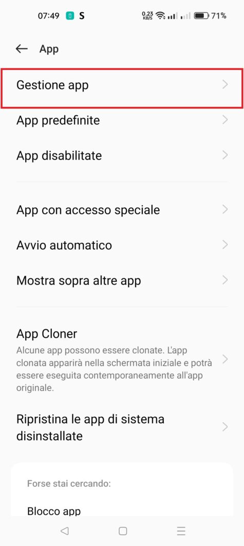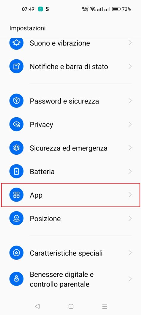• Individuare e toccare sull’applicazione che vuoi disinstallare dallo smartphone