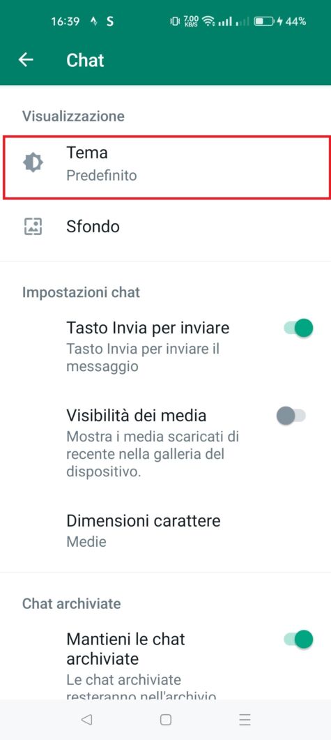Chiaramente se selezioni l’opzione predefinito, WhatsApp passerà dinamicamente al tema chiaro o al tema scuro in base alle impostazioni generali che hai abilitato nello smartphone (tipicamente in “Impostazioni” > “Display” > “Tema”).