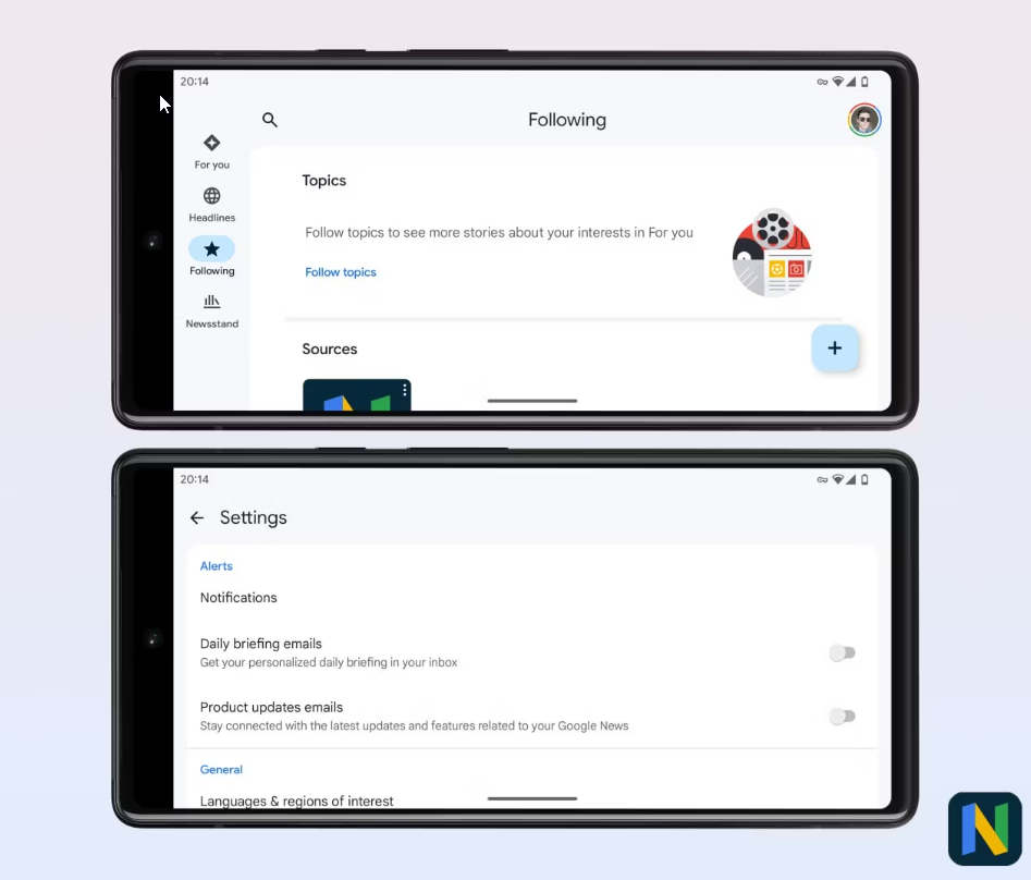 Altre differenze degne di nota includono un layout in stile scheda per il contenuto delle notizie con angoli arrotondati in alto, che separa la sezione scorrevole per gli articoli e le impostazioni dell’app dai componenti fissi dell’interfaccia utente, come la barra di navigazione e l’intestazione. Anche la barra di ricerca è passata da un rettangolo blando a uno con angoli arrotondati.