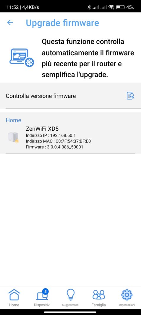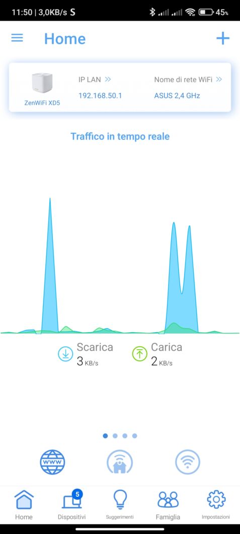 La nostra precedente configurazione si basava su un router Asus N55U e non avevamo una copertura perfetta in una casa da circa 250 metri quadri suddivisa su due piani. Non appena installato il nuovo Asus ZenWiFi XD5, non abbiamo notato un miglioramento della copertura nelle zone morte. Ciò significa che la copertura pubblicizzata di 222 metri quadri è abbastanza veritiera ma non sufficiente a coprire la nostra casa (anche se c’è da considerare l’eventuale presenza di muri in cemento e altri ostacoli).