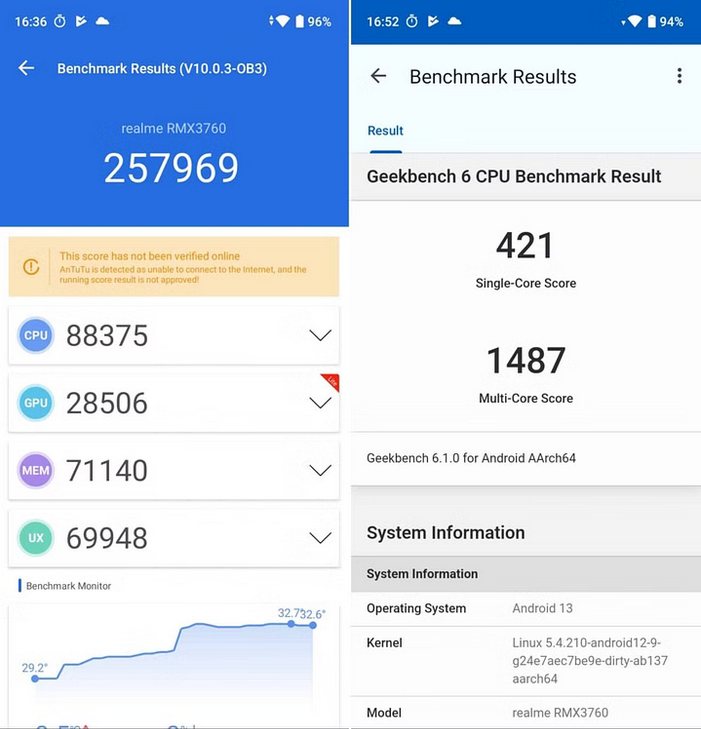 - OS: Android 13 con realme UI