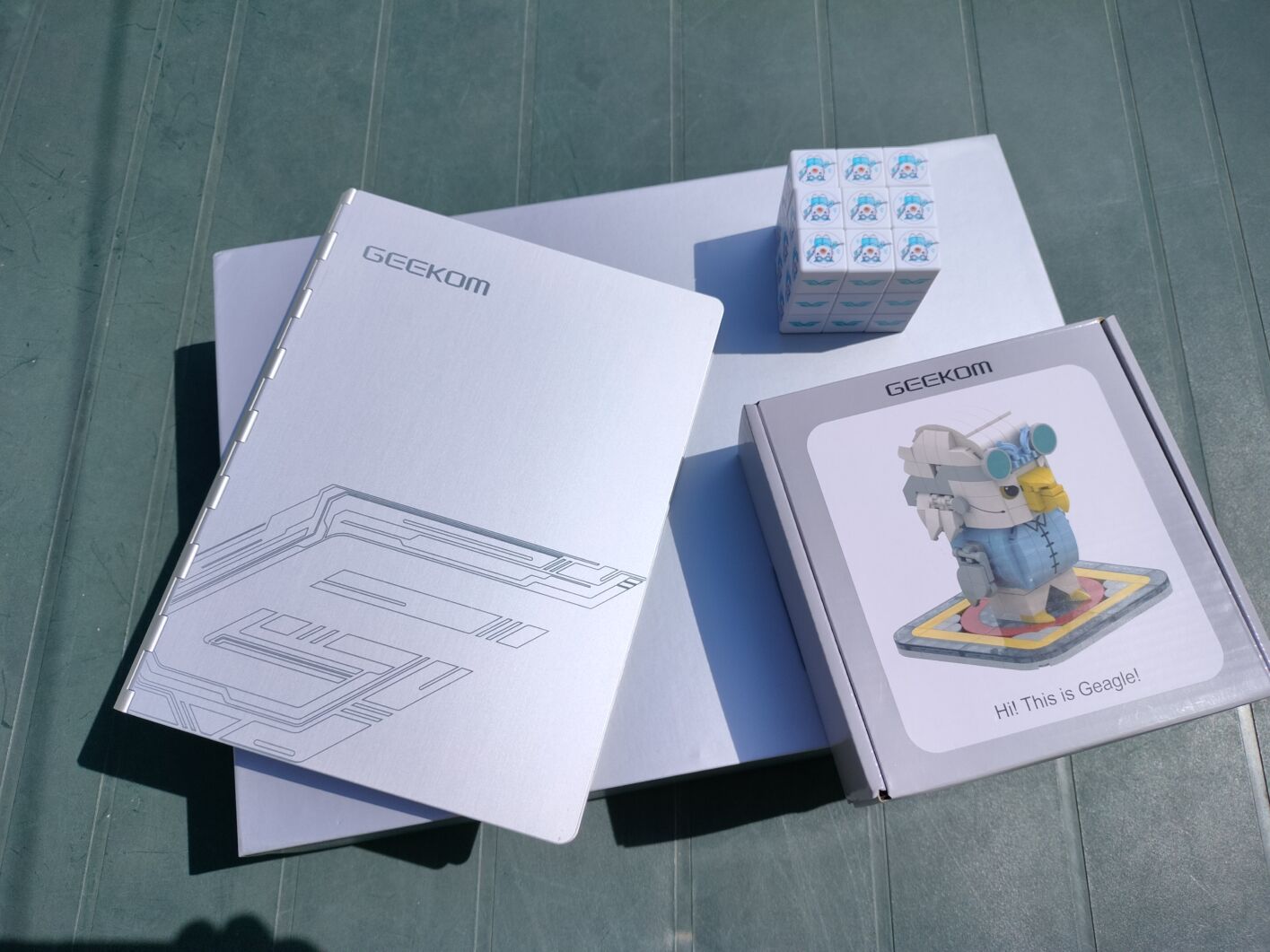 Come potete vedere dalle immagini, l’animo geek (che il nome derivi proprio da questo?) del team di ingegneri si è manifestato in questa scatola regalo contenente un cubo di Rubick, la mascotte ufficiale da assemblare e una comodissima agenda.