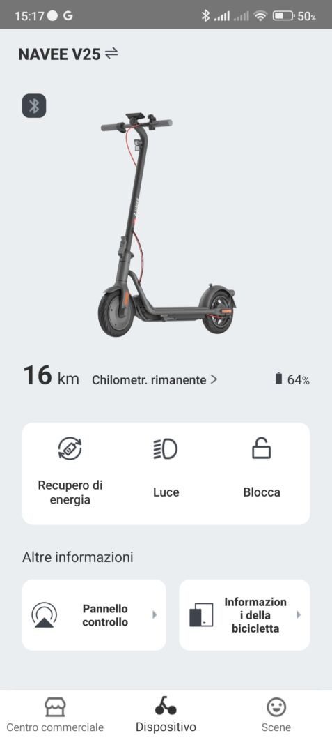 Da notare che l’applicazione ufficiale è anche il modo per poter aggiornare il firmware del monopattino.