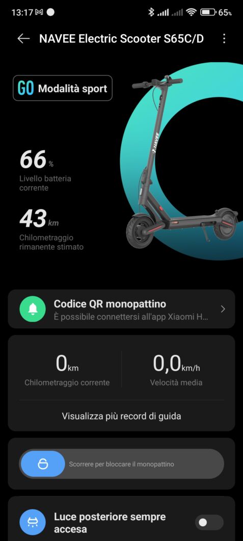 Navee è forse l’unica azienda nel settore ad avere 3 diverse app per il proprio portfolio di monopattini. Se con il V25i Pro si usa l’app ufficiale Navee, con il modello S65C si utilizza invece l’app Xiaomi Home (sorpresi?).