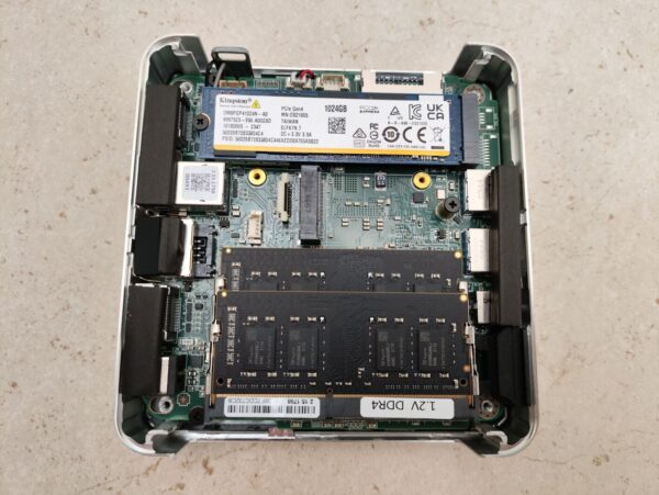 Per chi non fossero sufficienti, smontando la parte inferiore del mini PC è possibile accedere al vano interno dove si può installare un ulteriore SSD M.2 2242 SATA oppure sostituire i banchi della RAM o l’SSD principale. Tecnicamente si può anche sostituire la scheda di rete WiFi.