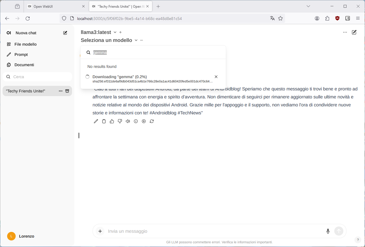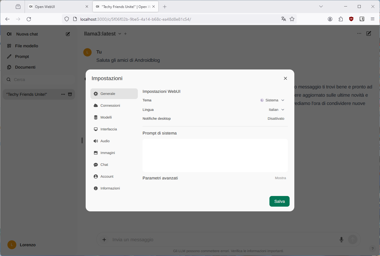 Dopo di che, tutto è pronto per eseguire OpenWebUI su un qualsiasi browser web (sia desktop che mobile).