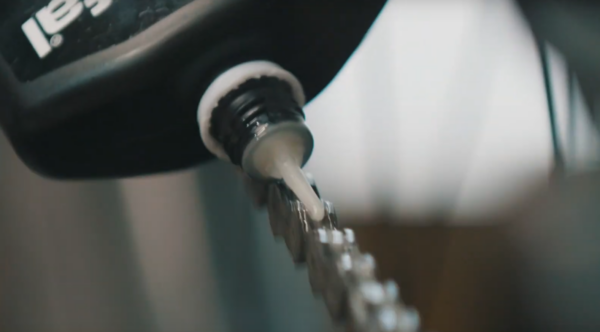In altre parole, bisogna smontare la catena (o utilizzare direttamente una catena nuova), immergerla nello sgrassatore (dentro il vasetto della Nutella è perfetto) e lasciarlo agire per qualche minuto. Allo stesso modo, anche le corone della guarnitura e il pacco pignoni vanno puliti per bene (queste anche con lo spazzolino, senza bisogno di smontare nulla). La fortuna è che questo processo è necessario solo la prima volta, con le conseguenti applicazioni che possono avvenire senza nemmeno toccare la catena.