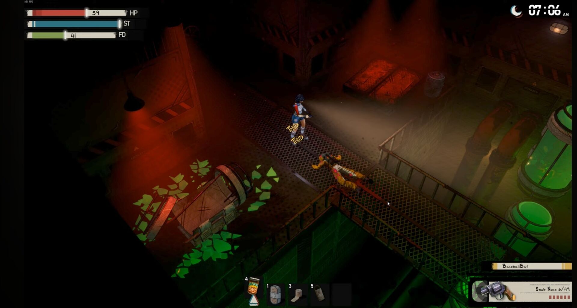 Durante il giorno, il gioco assume quasi connotati da sandbox survival: esplori gli scenari, raccogli materiali utili, costruisci strumenti, potenzi l’equipaggiamento e fortifichi il tuo rifugio o le postazioni avanzate. È un ritmo che ricorda titoli come Darkwood o certi survival roguelike, con una forte attenzione alle decisioni tattiche: cosa raccogli, cosa crei, dove ti rifugi e in che ordine affronti i vari obiettivi.